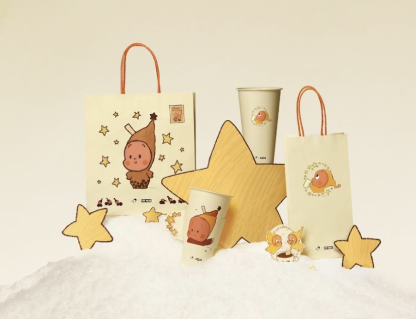 联名活动的多重惊喜让粉丝直呼过瘾:全球同步上新定制研发的冬日新品提拉米苏·英红(部分地区为提拉米苏·嫣红),搭配经典的烤黑糖波波牛乳系列,暖意直达心底;全线联名限定包材暗藏巧思,转动杯套就能为星星人“戴上”围巾,趣味互动让手中的茶饮更添温度;灵感小卡、贴纸、徽章、茶碗等限定周边一上线就成收藏热门。线下场景同样热闹,喜茶多地门店变身联名主题店,桌贴、门贴、形象KT板将星星人元素铺满空间,拍照区、星星人小票机等互动装置前挤满打卡人群。