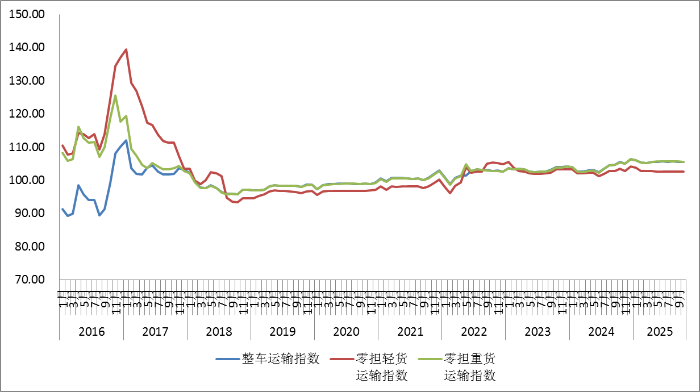 表1 2025年10月中国公路物流运价指数表
